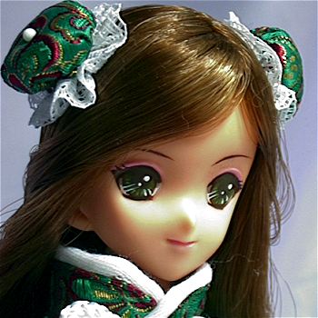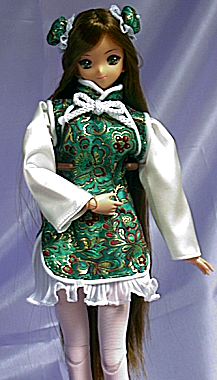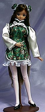 頭のお団子は、ドレスと同じ布地で出来ていて、小さなピンで留めてあります。 これを外せば、普通のストレートロングになります。 この子が着ているのも、オリジナルチャイナ服。 この子のヘッドもセ○製のお人形です。イベントにて、情報を下さった沢山の皆さま、ありがとうございます。 |