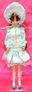 ぴんくちゃんと、デザイン、色違いのお揃いです。 ぴんくちゃんを作ったとき、寒そうと思いつつ、その時には、この生地を仕入れてしまっていたので、作ってしまいました。 着物いづみちゃんは、髪がちょっと、薄かったので、前髪を作るのが、心配でしたが、なんとか、出来ました。でも、別れちゃっていますね。 ぴんくちゃんのような、アイペイントがしたかったのですが、やっぱり違いますね。 でも、この子はこの子でいいかも・・・と、思っています。 この子は、アンティークだけでなく、他の服も似合いますよ。 |