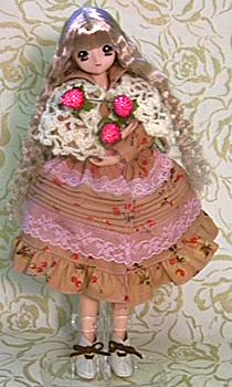 いちごちゃんです。 99年11月25日頃作りました。 髪は、銀髪をダイロンで染めました。