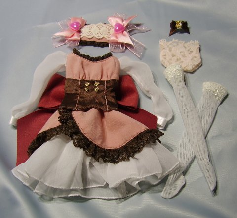 | いちごチョコのドレスセット その2 対応素体=オビツ25/L胸 セット内容 ドレスの上半身部はベロクロ留め、スカートはホック |