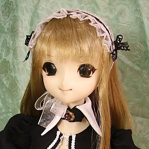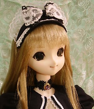Bセット![]() ワンピースとペチコートはAセットど同じものです。 エプロンは後ろをリボン結びする形。 切り替え部に黒のレースでラインを入れ、 すそはレースで飾っています。 チョーカーはシンプル。後ろはホックで留め。 ヘッドドレスは太いカチューシャタイプ。 針金入りなので、ヘッドに合わせて形を変えられます。 大きなリボンとレースで飾りました。 |
