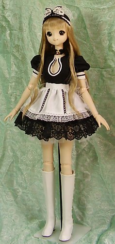 Aセット![]() ワンピースの生地は薄手で、薔薇の地紋入り。 後ろはコンシールファスナー。 総裏です。 ペチコートはチュール、ウエストはゴムです。 エプロンはハイウエストで後ろスナップ留め。 切り替え部にはしごレースを入れ、 すそは綿レースで飾っています。 襟付きチョーカーはホック留めです。 ヘッドドレスはリボンで結ぶタイプ。 エプロンと同じリボンを飾りました。 |