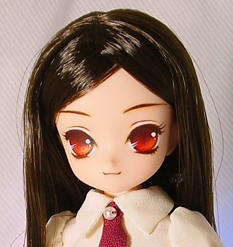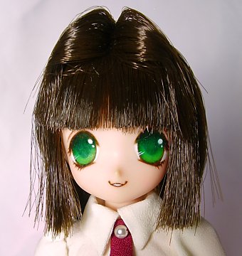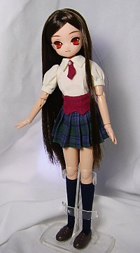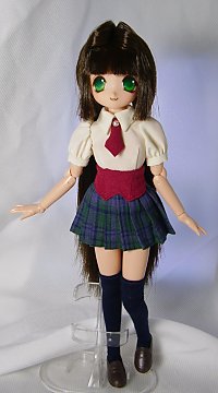 | オリジナルドール A アゾン05ヘッド+オビツ21(肌色・ナチュラル) 薄いクリーム色の後ろ開きブラウス カマーベルト一体型ひだスカート/紺色のニーソックス こげ茶色のローファー ストレッチレースのショーツ こげ茶色の髪は前髪を立てるようにお湯パーマ 販売済み |