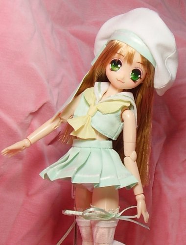 ペパーミントグリーンとレモン色のセーラーです ブラウスの丈を短くして お腹を見せました