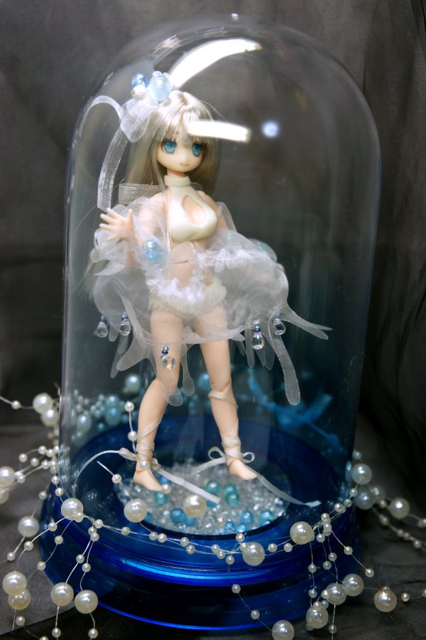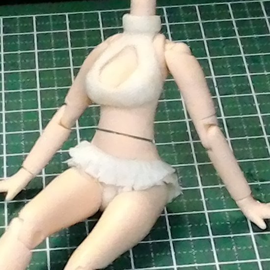 ドーム内のスタンドは、薄いプラ板をボディのウエストの切り替え部に挟むことで固定しています。