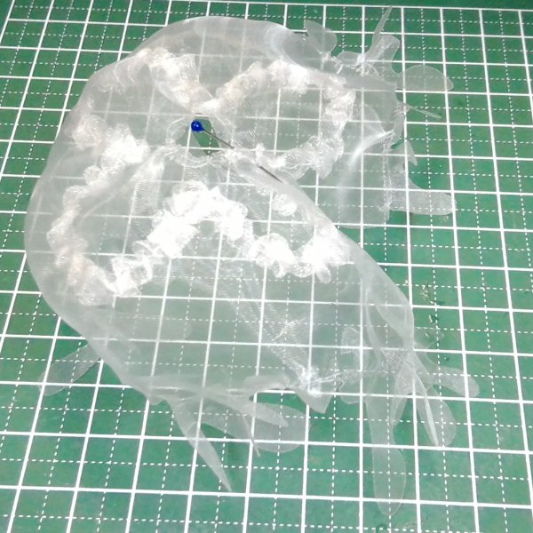 スカート本体と袖に使用した生地はグラスオーガンジー