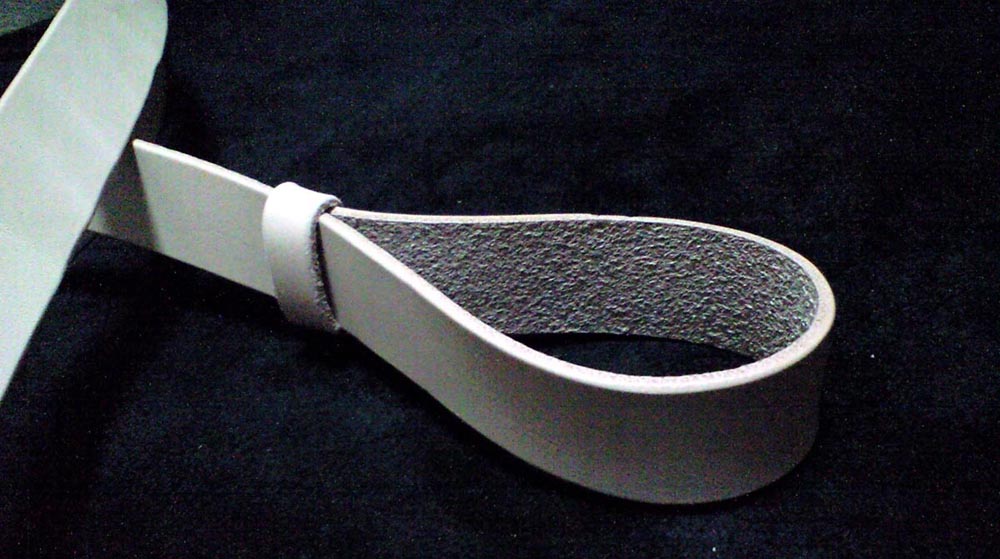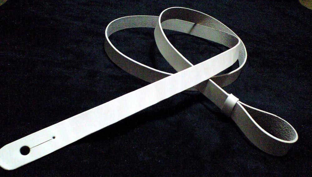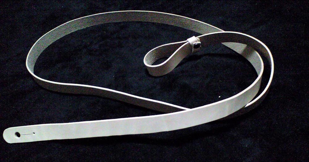 調節機能なしの2cm幅ストレートタイプ、フロントはヘッドジョイントタイプです。色もナチュラルのヌメ革、と超シンプルタイプ。拘った上でのこの無駄のないデザインがご希望でした。ヘッドコネクト部も全て一体型なので、ヘッドに巻きつける際本体全部をくぐらせないといけないので、全体2mm厚と少々薄めに仕上ています。