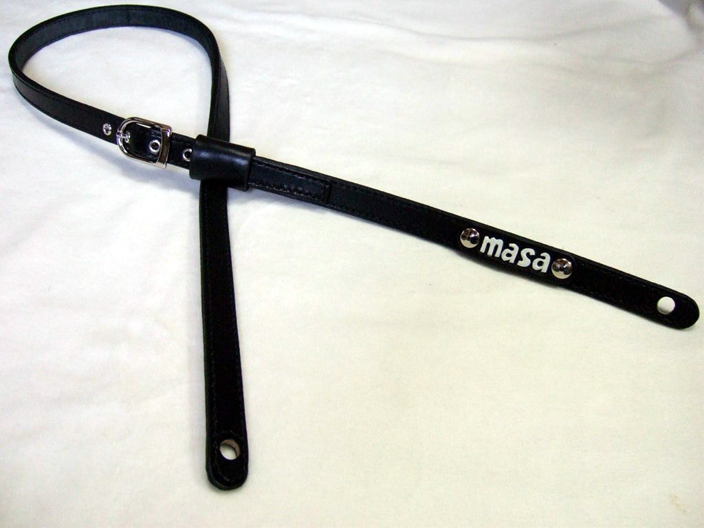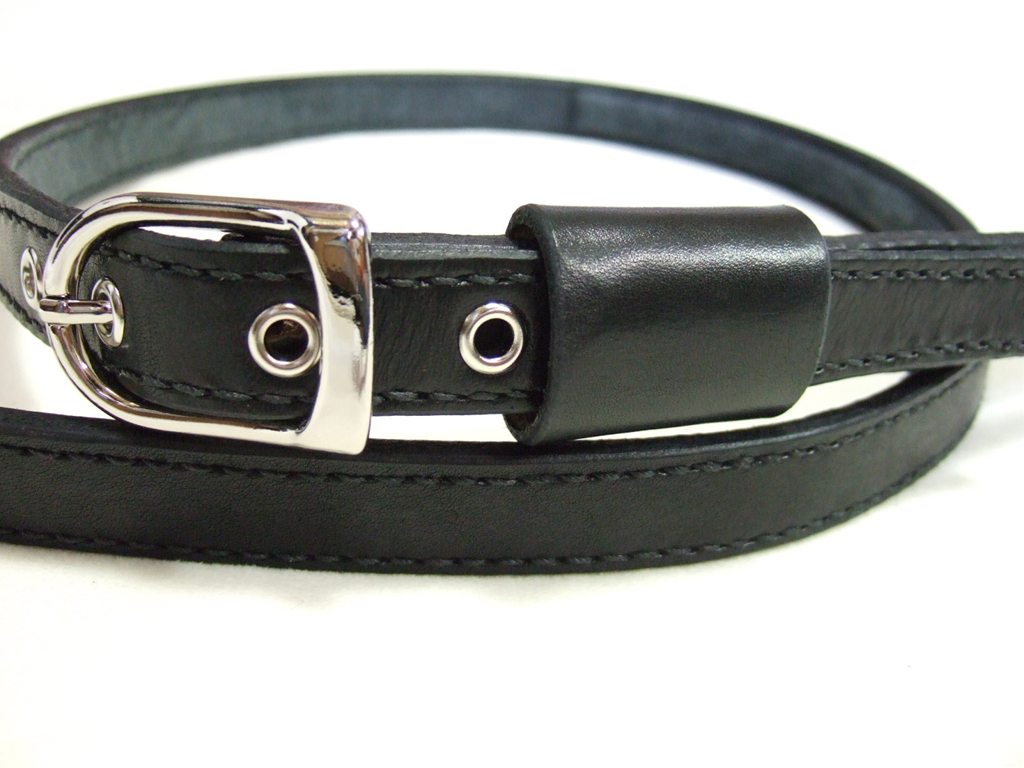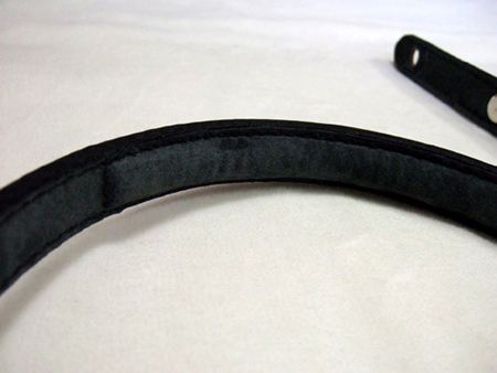 2cm幅でバックル調節、裏革は黒ではなく濃いグレーのスエード、2cm幅でもウレタン内蔵、ベルト通しとワイアレスホルダー兼用の幅広のサル革、シールドホルダーにネーム入れ、ベルトピン穴はハトメ留め・・という具合です。
