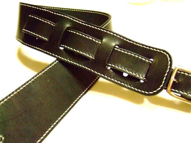 同じくスリット調節&バックル調節のダブル調節機能付き。色は黒、ステッチの色が白と、前作よりさらにステッチが際立ったものとなりました。画像では、その際立った雰囲気がお伝え出来ていませんが、手縫いステッチに拘っている者としましては、ステッチに重点を置いてくださるのは嬉しい限りです。