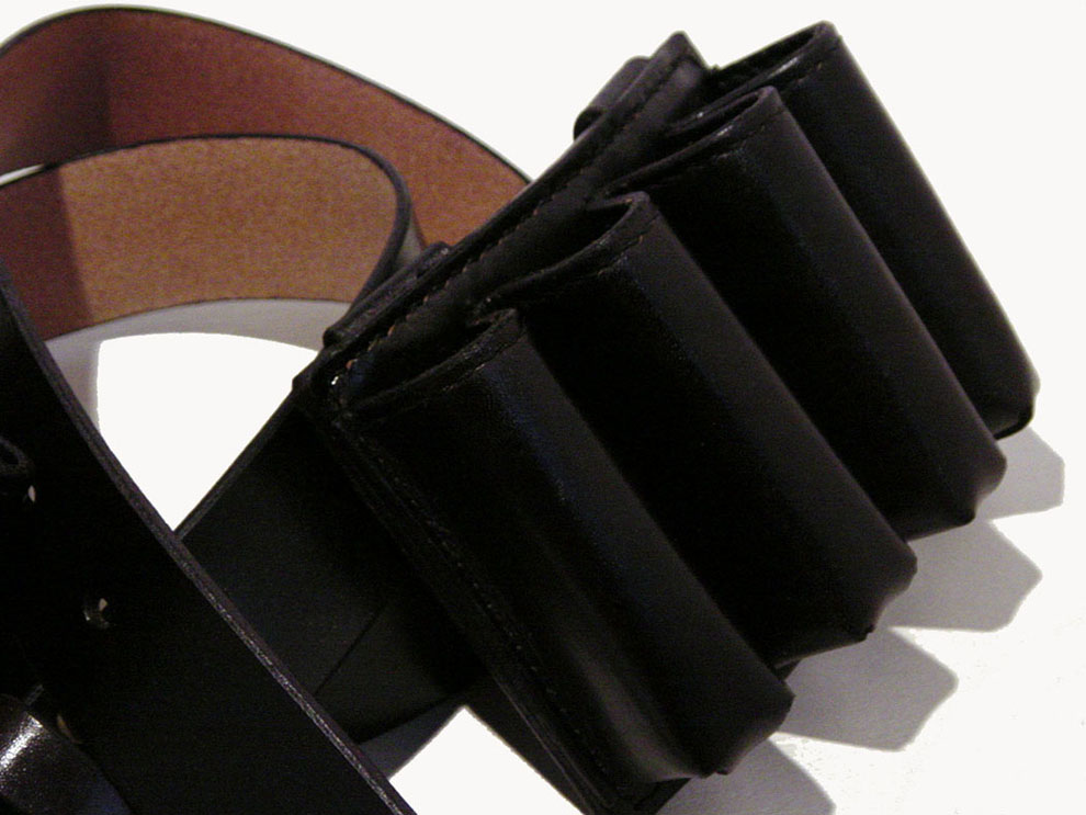 10ホール用ホルダー4連を左右に配したハーモニカベルトです。黒一色で模様もなくシンプルで、大人仕様の仕上がりになりました。これならどんな衣装にでも合わせやすく、たとえばスーツで仕事帰りのライブ参加でもOKですね!笑