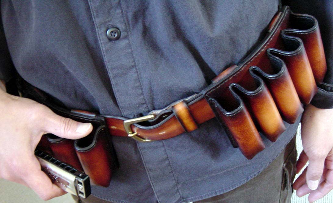 10ホール9本とクロマティック用のベルトタイプのホルダーです。右側に来る4連ホルダーとクロマ用は連結出来てなおかつ単独でも使用出来るよう、とのことでしたので強力なジャンパードットで着脱可能にしました。ビンテージサンバーストがリクエストでしたが、綺麗に色が出せたと思います。ベルトの後部には♪SHOW