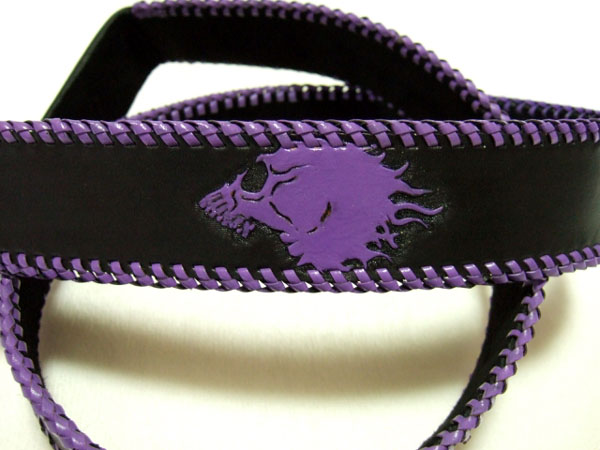 での、ウエストバッグ用ベルトです。ストラップと比べると、幅が狭いので、スカルのカービングが細かくて大変でした。バックル金具はお手持ちのものをご自分で取り付けるとのことで、こちらではここまでで完成です。