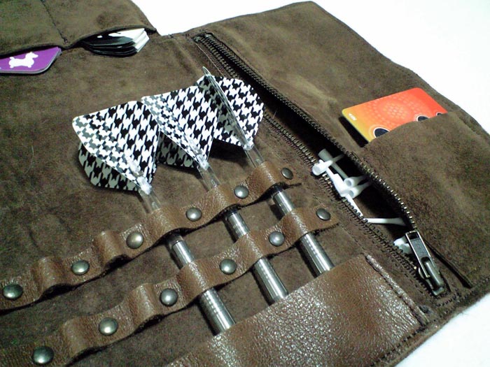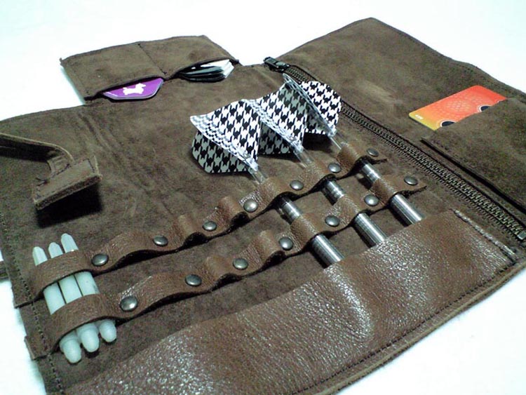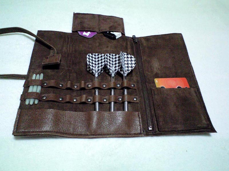 ダーツ関連グッズをひとまとめに収納出来るケースです。柔らかい鹿革でクタっと手に馴染む感触です。