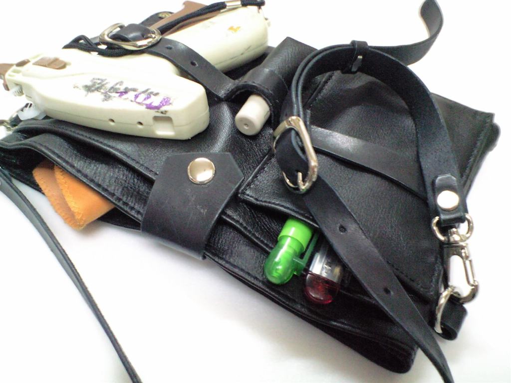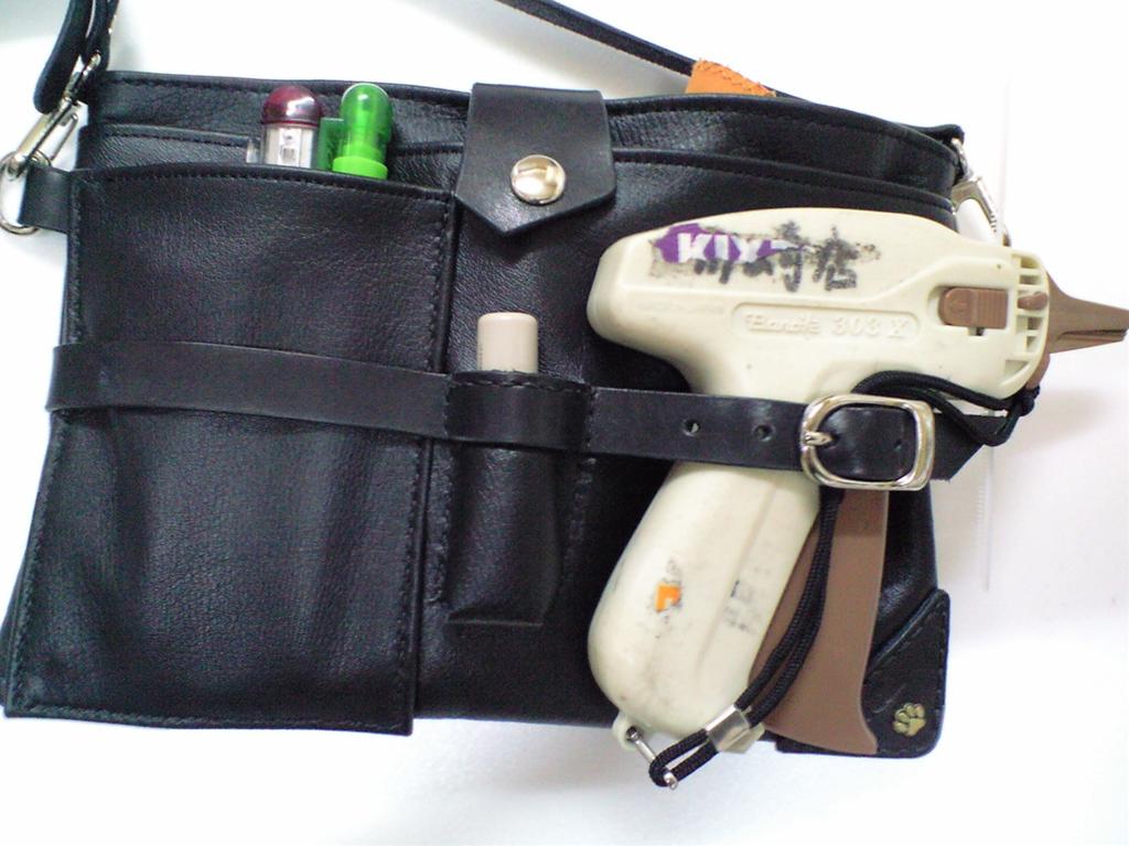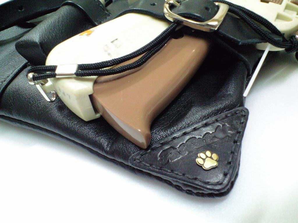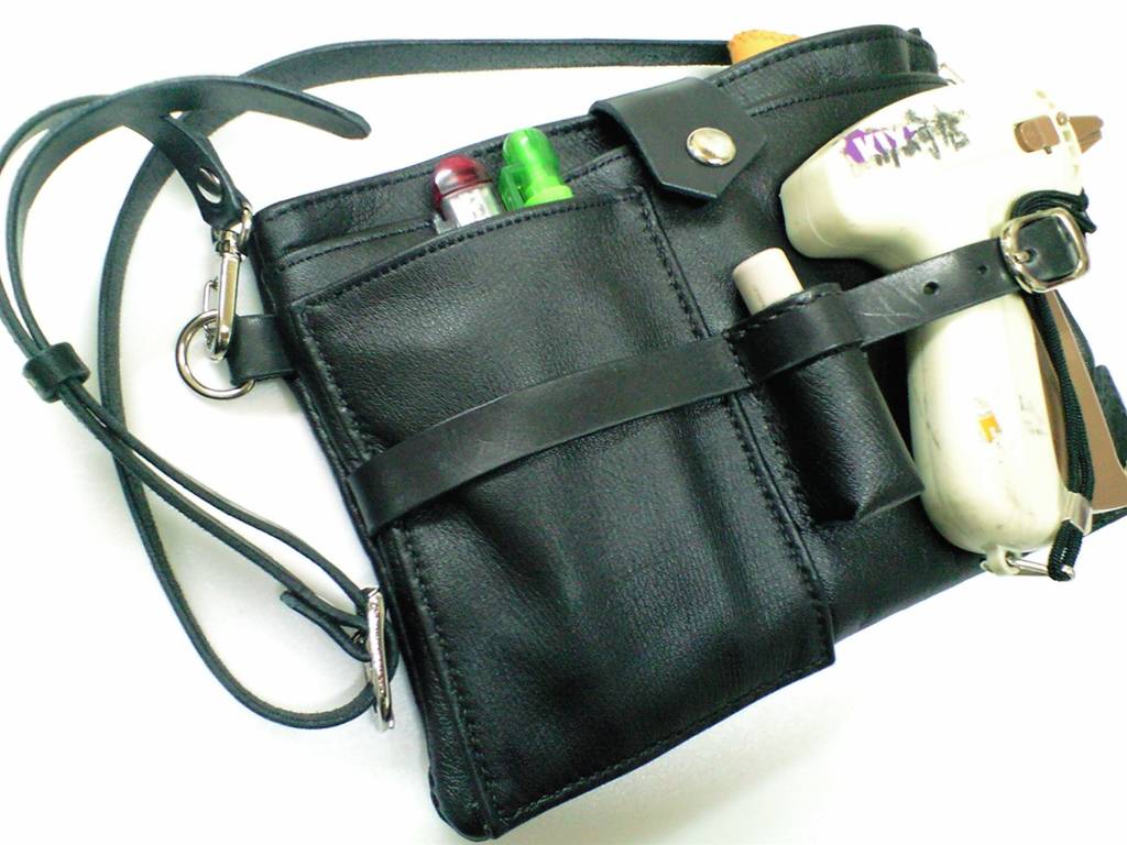 | 牛ソフトクロームレザーで作ったしなしなと柔らかく身体にフィットするツールホルダーです。タグガンをベルトにホールド出来るように、また印鑑を多用するためスムーズに出し入れ出来るように、その他の道具も分けて収納出来るようポケットをいくつか、でも嵩張らないように・・・というご要望にお応えした作りになっています。 コーナーにfatcatロゴと猫足の飾りカシメをワンポイントで。 参考商品 |