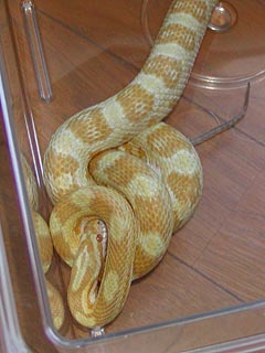 ヘビ温室があるです。捕食中のバターコーンスネーク。 |