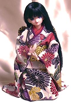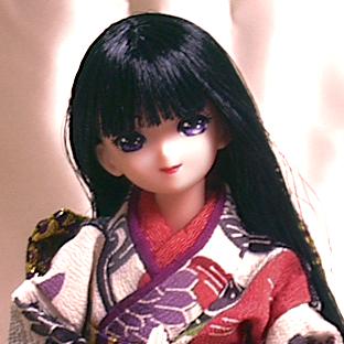 着物は、イベントで購入しました。着せてみたら、期待通り似合ってくれて、すごく幸せです(^^)。 今度、SAサイズ(背が高く、腕も長いので)の着物を作ってあげようかと思っています。和服が、とても好きなので、雑貨や骨董を売っているお店で、古い、いい色柄の布を見つけると、つい買ってしまいます。(・・・それが高いんだ〜)だから仕立てていない布がいっぱい・・・。もったいないオバケがでないように頑張らねば。 素体にした「す○れ」の肌色が白いので、黒髪が映えますね。エアブラシの調子が良かったら、頬紅も入れてあげたかったなあ。 |