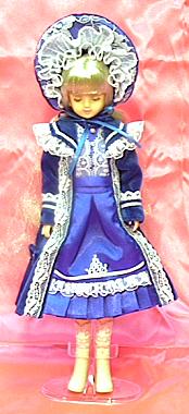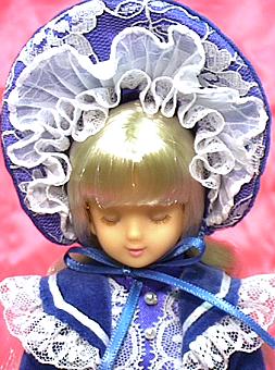 サテンと別珍を使ったワンピースです。以前アンティークドールの展覧会で買ったパンフレットを見ながら、作りました。 切り替えや、素材の会わせ方、レース使いなど、見ているだけでも楽しいのですけれど、やっぱり作ってみたくなります。なかなか思い通りにはいかないことも多いのですが、それなりに仕上がると、嬉しいですね。 帽子は、もちろんボンネットです(^^)。お人形が大きくなって、楽しいし、飾り付けで雰囲気が変わったりするので、大好きです。 目をつぶっているので、なんだか立たせておくのが、可哀想な気がします・・・。元イヅミのように、改造アクションボディを付けて、座らせてあげられたら、いいのですが。椅子も作ってあげたいけど、その前にお嫁に行ってしまうのかな。 |