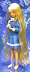 | ヘッドはいづみちゃん。髪の毛に軽く三つ編みパーマを掛け、前髪を作りました。 耐水ペーパーで、目元を削り、茶色のサランをまつげとして植毛しました。白雪の時よりも、少な目ですね。 この子のボディは、22センチ、リカちゃんと身長が同じ可動ボディです。 ボディ改造のページも作りました。興味のある方は、こちらもご覧下さい。 |
