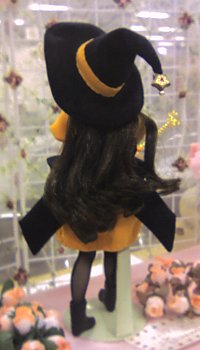 | ハロウィンなのでカボチャのイメージのドレス つばの大きな魔女帽子の尻尾には 金色の星がついています 着用のドレスの内容 画像では見えていませんが スタンドは付属しませんので |