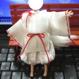 全身真っ白。えりのとことと飾り紐が真っ赤のいつものパターン。